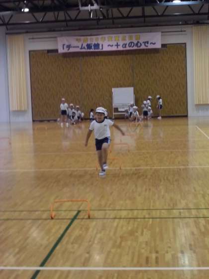 体育では、ハードルの学習に入りました。障害物がなく普通に走ったときと、ミニハードルを飛び越したときでは、どちらが速かったかな?