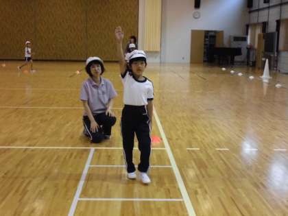 今日は、交通教室が行われました。体育館に作られた道路を使って、安全な歩き方の練習です。「自分の命を自分で守る」ことがしっかりとできるように、厳しい目で見て指導を行いました。ご家庭でも安全に気をつけて道路を歩けるように、お話をしていただきたいと思います。