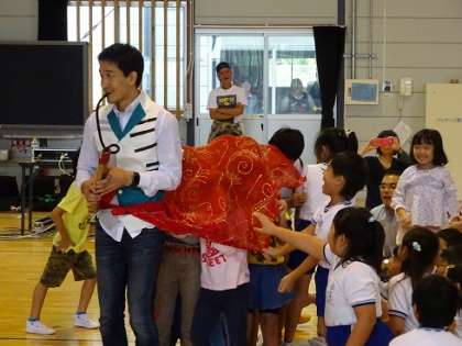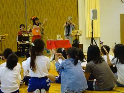 今年も おおたか静流(しずる)さん率いる「でんでらキャラバン」がいいたてっ子のために来て下さいました。でんでらキャラバンの来校は今年で3回目になります。午後の楽しい一時を過ごさせていただきました。