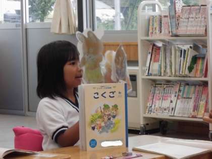 国語では、登場人物がどんな気持ちで帰っていったのか、みんなで想像してみるという学習を行いました。ペープサートを用いてその人物(動物)になりきって楽しく発表できました。