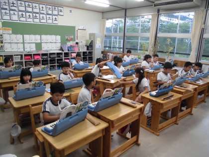 音楽では、鍵盤ハーモニカで曲の伴奏を弾く練習をしています。たった2つの音だけれど、指番号や音をまちがえずに弾くのは大変です。でも、練習を重ねるうちに、上手になってきています。リコーダーもどんどん新しい曲にチャレンジしているところです。