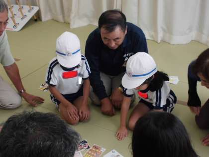 そして、までいカルタ大会も行いました。2つのグループに分かれて、個人戦です。大人も子どもも「負けないぞ!」という気持ちで真剣なまなざしでカルタを見つめ、1枚でも多く札をとろうと大盛り上がりでした。
