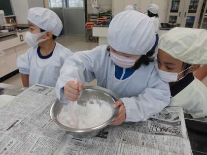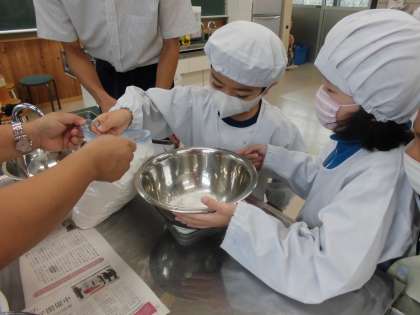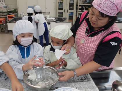 まずはグループ1の活動の様子です。説明をよく聞いて、みんなで協力して作れました。なかなか手際もよく、「みんな上手だね。」と褒めていただきました。