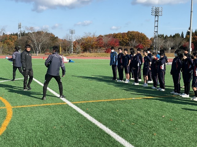 本日、福島ユナイテッドスポーツクラブの方が3名来校し、サッカー教室を実施しました。風が強い天気でしたが、児童生徒たちは、楽しそうに一生懸命取り組んでいました。