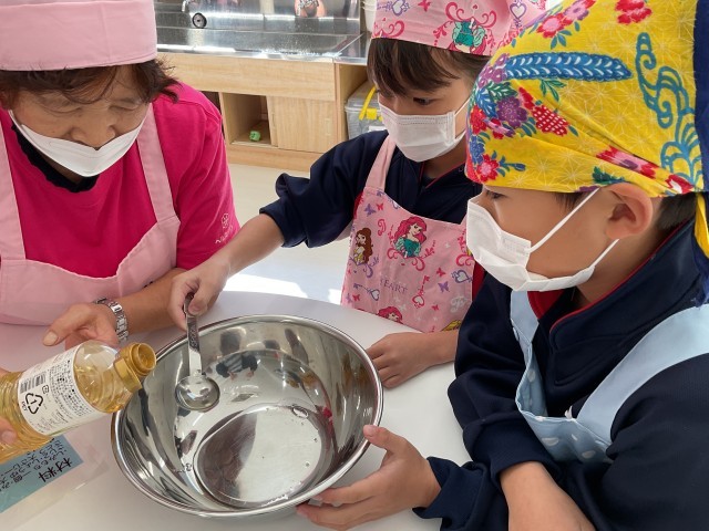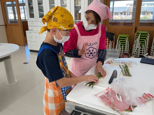 3年生は、いいたて学で、しみ餅を使ったレシピを考え、いいたて食を考える会のみなさんと一緒に、実際に作ってみました。いいたて食を考える会の皆さんにアドバイスをもらいながら、一生懸命調理に取り組んでいました。みんなで食べた際には、「すごいおいししい!」「これは学校のみんなにも食べてもらいたい!」と話していました。