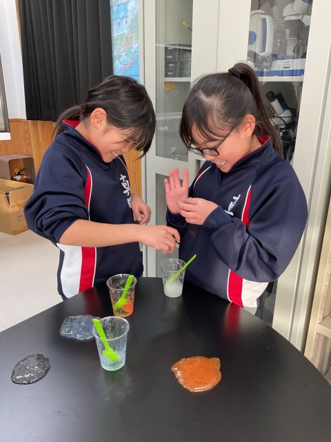 今日のクラブ活動は、文化クラブはスライム作り、運動クラブはスポーツ公園でサッカーをしました。