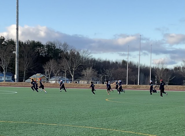 寒い風が吹く中で、子どもたちは頬を真っ赤にしながら、楽しそうにプレーすることができました。