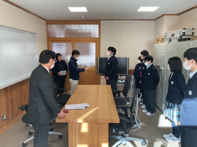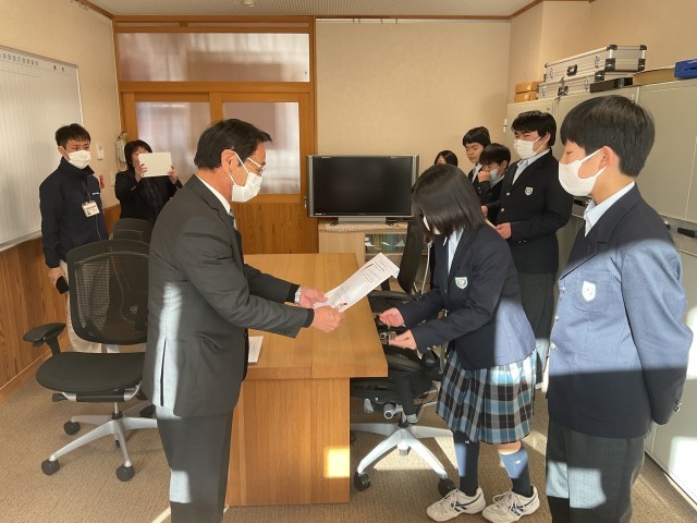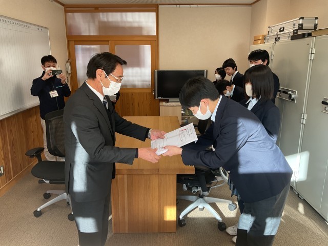 本日、赤い羽根共同募金で集まったお金を児童生徒会から飯舘村社会福祉協議会の方にお渡ししました。一人一人の善意が社会のために役立つことをうれしく、そして、誇りに思います。