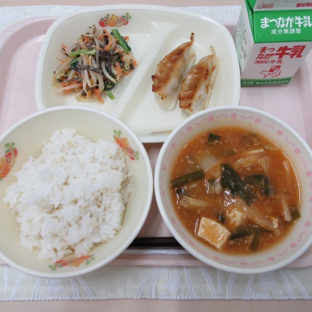 麦ごはん 焼き餃子 中華サラダ 麻婆白菜 牛乳
