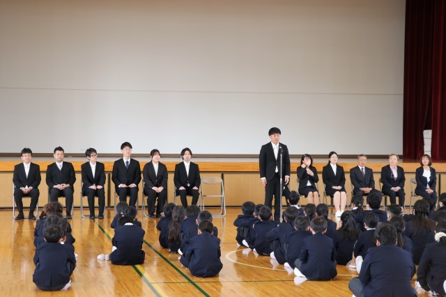 着任式では、13名の先生方をお迎えし、児童生徒会長から歓迎の言葉が述べられました。
