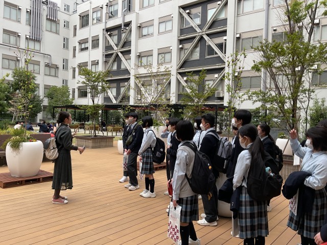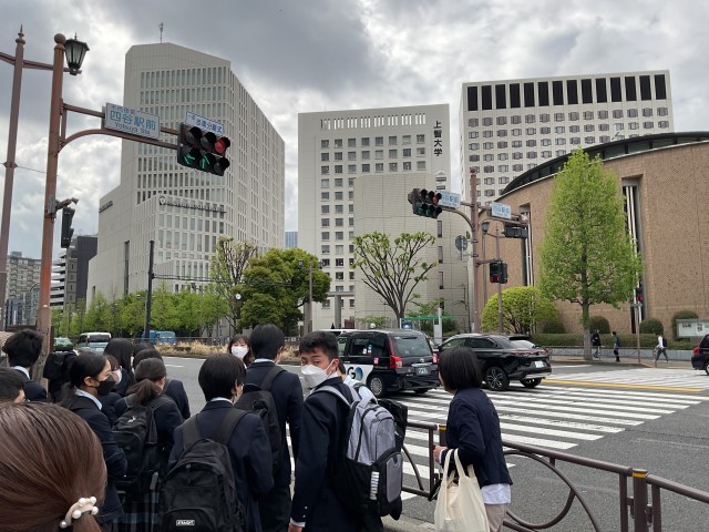 上智大学に到着し、学生の方に大学内を案内していただいています。