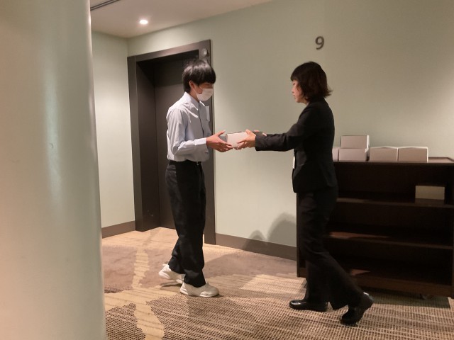 生徒の皆さんは朝食を受け取り、部屋でとりました。