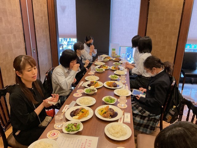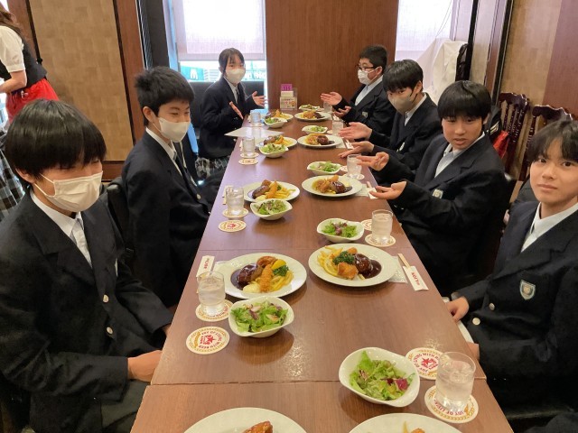 少し疲れた様子も見受けられますが、この後の劇団四季「アラジン」に向けて、みんな大好きハンバーグでエネルギー補給です。