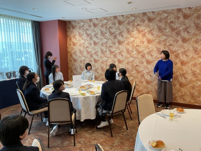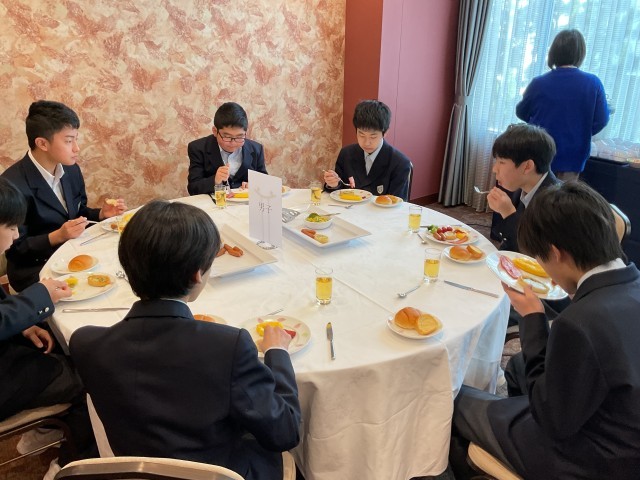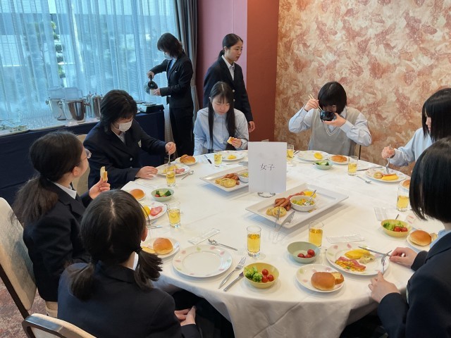 生徒の皆さんは朝ごはんを食べ、いよいよディズニーランドに出発です。