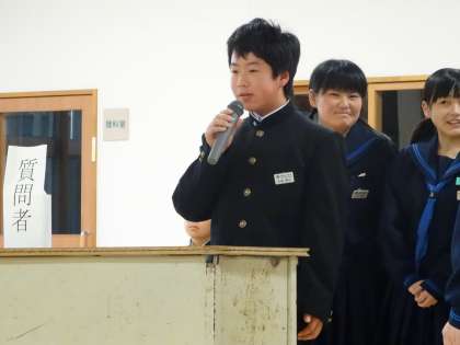 それは、「活発な意見の交換」です。生徒会本部へに質問の時に3年生の男子が自分の意見をぶつけ、それに対し生徒会本部役員は自分たちの考えを伝えようという姿勢が見られました。