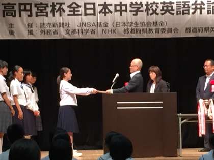 本日、喜多方プラザで開かれた福島県下中学校英語弁論大会で、佐藤安美さんが見事第二位に輝き、全国大会出場を決めました。思いのこもった素晴らしいスピーチでした。おめでとうございます!