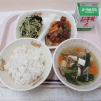 【献立】 麦ごはん 肉団子の酢豚風 蒟蒻サラダ 豆腐と椎茸のスープ 牛乳 今日のスープには、飯舘村の高野靖夫さんのところで作られた椎茸を使いました。高野さんのところでは、大きなハウスの中で椎茸の菌が入...