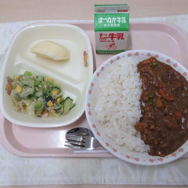 【献立】 きのこカレー 小松菜とツナのサラダ りんご 牛乳 「1日1個のりんごは医者を遠ざける」ということわざを聞いたことがありますか?りんごには、食物繊維やカリウムがたくさん含まれていて、病気から体...