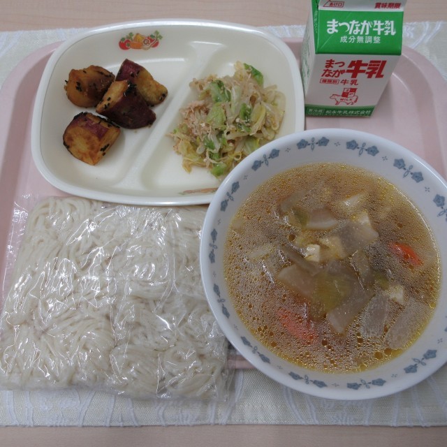 【献立】 けんちんうどん からし和え 大学芋 牛乳 さつまいもは、1600年頃、薩摩地方(現在の鹿児島県)に伝わってきたことから、「薩摩芋」と呼ばれるようになりました。土地がやせていても育つので、江戸...