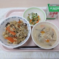【献立】 親子丼 白菜の漬物 豆乳入り呉汁 牛乳 大豆をすりつぶしたものを「呉」といい、それを野菜たっぷりの汁の中に入れたものが呉汁です。大豆といろいろな野菜が入った呉汁は、栄養価が高い料理です。また...