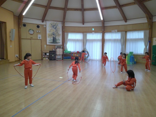 また、なわとび、フラフープ、スキップボール、鉄棒、跳び箱など、自分で決めた目標に向かって挑戦中。目標達成した時は満足感を味わい、さらに上の目標に向かって友達と一緒に頑張っています。