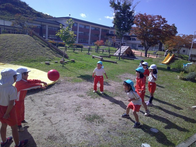 ドッジボールでは、勝ち負けがあって楽しめることを伝えると、「今日は負けても次があるよ」と友達同士で言葉の掛け合いをしてなぐさめる姿も見られます。そら組の子ども達は、遊びの中で困ったことは学級で話し合い、アイディアを出し合いながら友達と協力して自分達で遊びを進める楽しさを味わっています。
