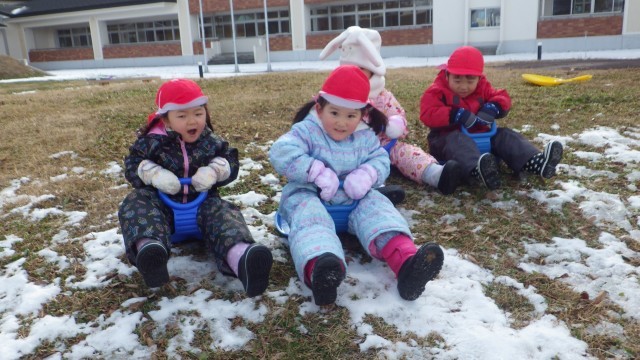 たいよう組の子ども達は、雪遊びが大好きです。寒くても園庭に積もった雪を見ると「お外で遊びたい」と言ってきます。