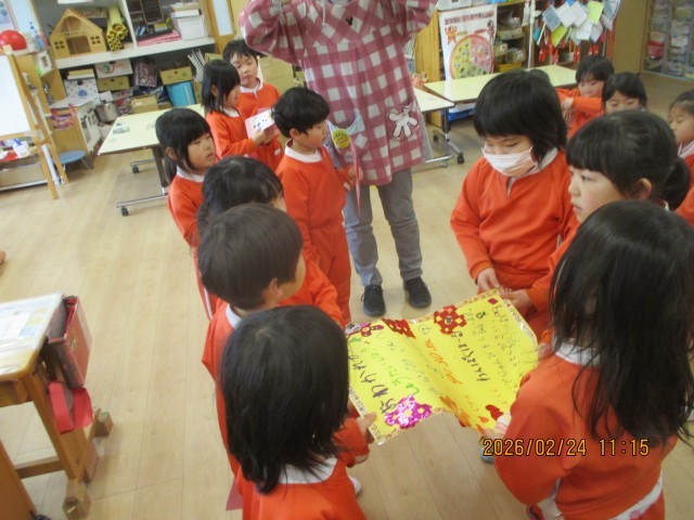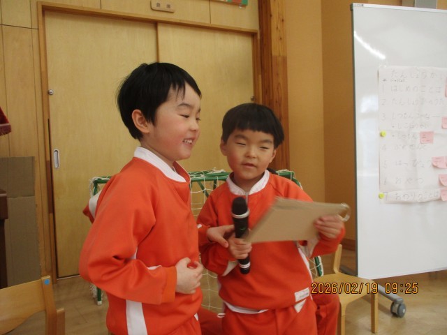 2月からはそら組より誕生会の進行の引継ぎをしながら司会に挑戦したり、一大イベントとしてみんなでおわかれ会に向けて計画を立て、招待状作りや会場の装飾作りなどの準備をし、そら組さんに喜んでもらおうと張り切っている子ども達です。