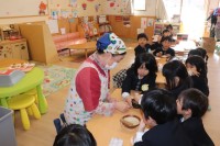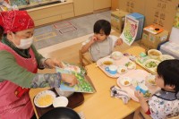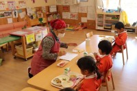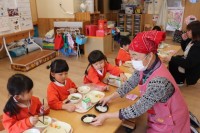 1月14日、「何でも食べて元気な子になって!」とこども園の食育担当(3人)で、人...