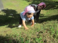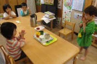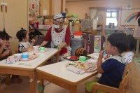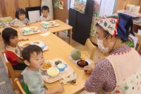 9月19日、今年園の畑で育てたかぼちゃを春巻きに、ミニトマトをサラダにして提供し...
